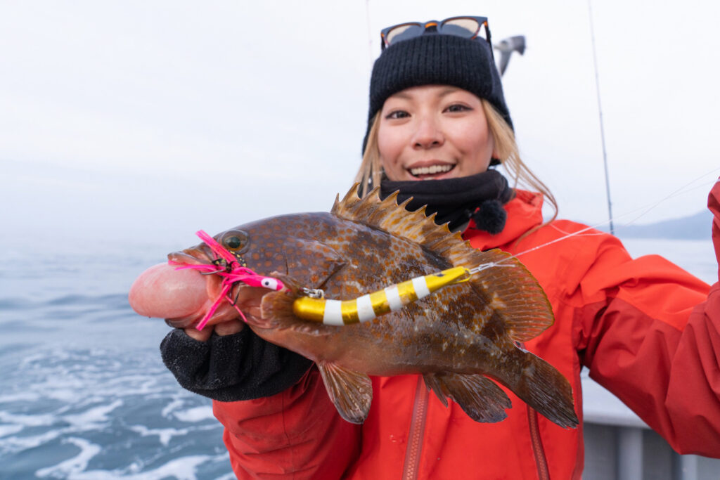 使用したのは、STARTの根魚専用設計ジグ「ボトムステップ」と、2026年新製品の「たこっちゅベイト」!!