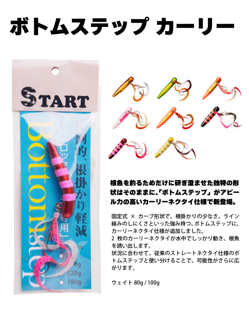 またSTART公式オンラインストアでは、一足早く「カラー針仕掛け」「ボトムステップ カーリー」「ボトムステップ ヘッド」の販売を開始いたしました!