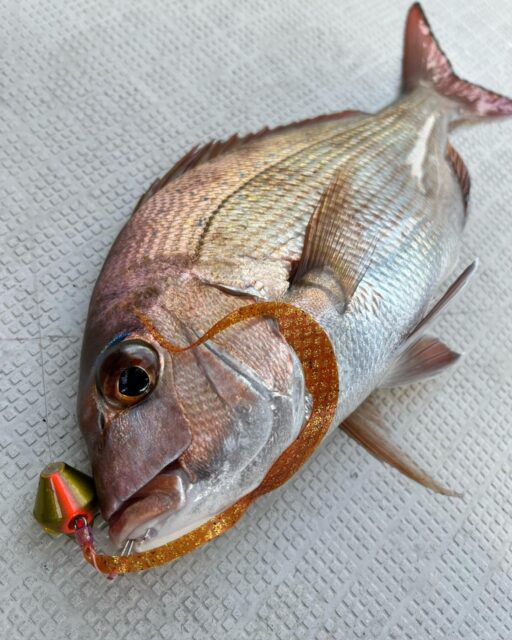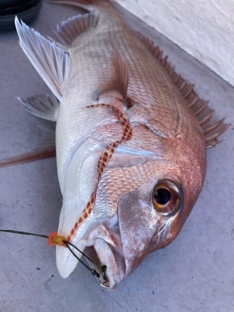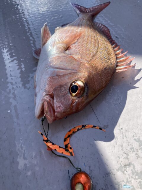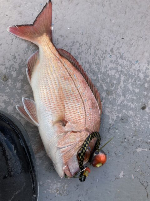 3枚目の写真は稚鯛をリリースした時の写真ですが、1,2枚目は別の日に80cm/6.5kgの大鯛を同じ組み合わせで釣り上げました。