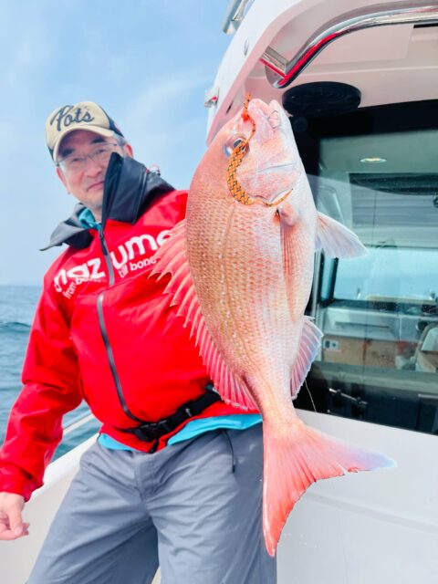 下津井周辺でノッコミ真鯛 蛍光オレンジ×蛍光オレンジで好釣果