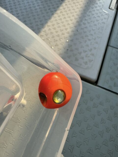 釣行開始後、無難に一つテンヤでマダイを釣り上げ大漁を期待しましたが、カワハギの猛攻を受けエビがポリポリ食べられて厳しい状態になりました。